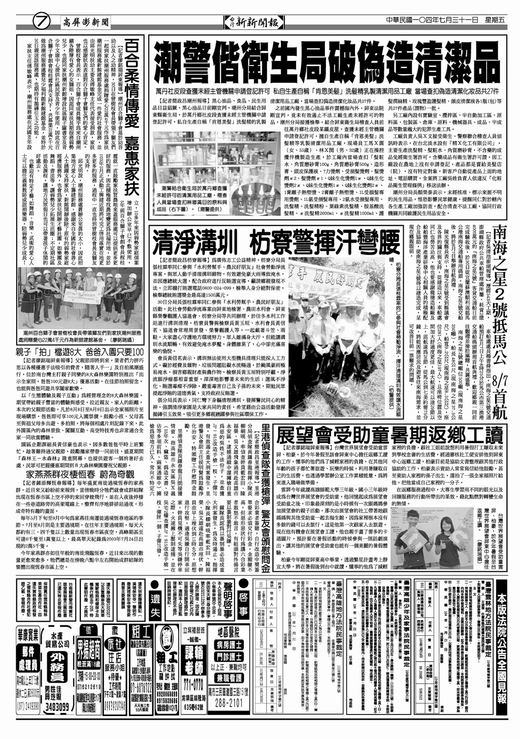 20150731台灣新新聞報各版新聞(電子報)