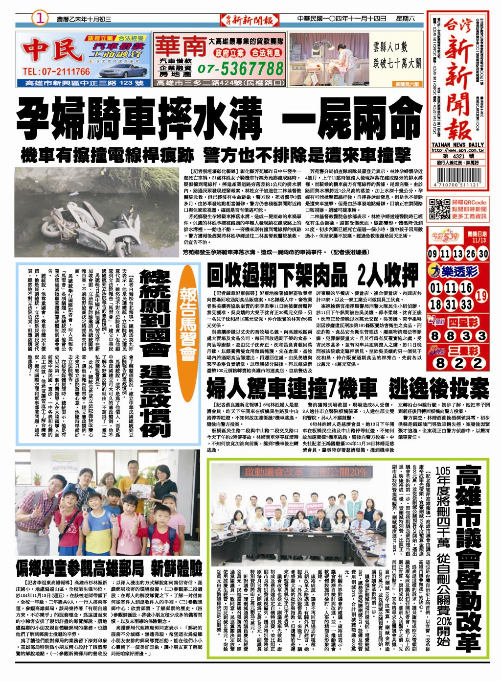 20151114台灣新新聞報各版新聞(電子報) 取得連結 Facebook X Pinterest 以電子郵件傳送 其他應用程式 11月 13, 2015 查看全部取得您自己的 Flash 投影片代碼請點我看今日所有新聞照片 取得連結 Facebook X Pinterest 以電子郵件傳送 其他應用程式 留言